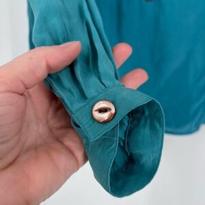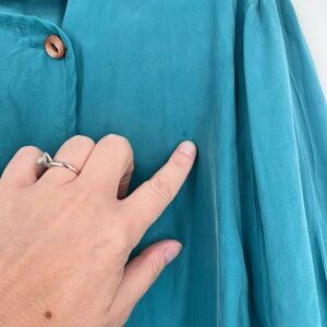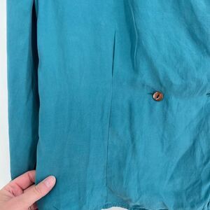 Vintage Sigrid Olsen Women's Double Breasted Long Sleeve Top Teal Blue Size 8