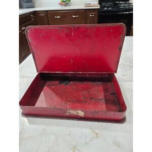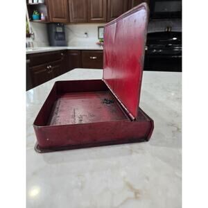 9" Long X 7" Deep x 1.5" Thick. Red in color. Made to look like a book. See pictures they are part of the description Item 2A unit I box 4 VN 36