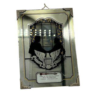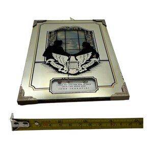 This Vintage Silhouette Reverse Painting features a couple with the white house in the background and an eagle. Also serves as a thermometer. The item measures 4 3/4" x 7". A unique piece that adds a touch of nostalgia to any decor.
