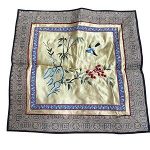 Vintage Silk 12x12 Silk Pillow Cover Bird & Bamboo Embroidery Pattern