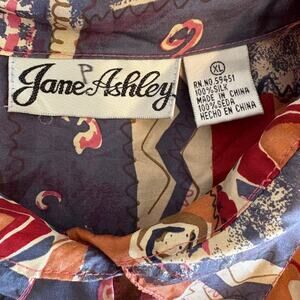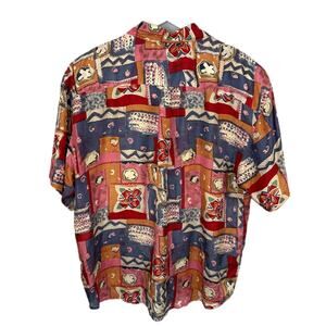 Vintage Silk Abstract Pattern Short Sleeve Button Up Shirt - Women's Size XL