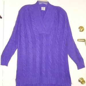 True Vintage Beautifully Designed Partners Mervyns Silk Angora Pullover Purple Long Sleeve Very Soft Removable Shoulder Pad Cable Sweater Size XL.