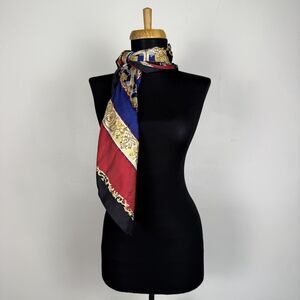 Vintage Silk Baroque Holiday Scarf | Navy, Gold, Red | Jujus Vintage Find