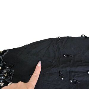 Vintage Silk Beaded Evening Gown By Gene Roye Size 6 Black With Floral Embellish