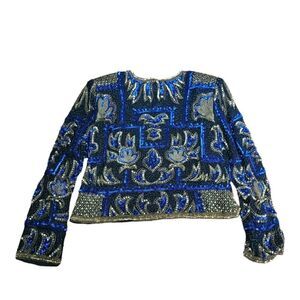 Vintage Silk Beaded Sequin Brilliante Blazer Dinner Jacket by JA Blue Black