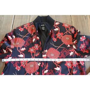Vintage 90s Y2K 100% Silk Bomber Jacket - Notations-Womens Medium Black Red Asian Floral-Zip Pockets- Lightweight- Fully Lined- Mint Vtg Condition