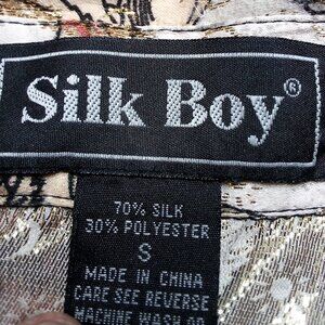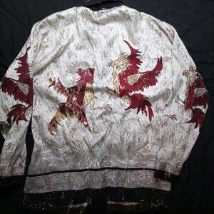 Vintage Silk Boy Rooster Phoenix Metallic Gold Button Shirt