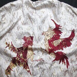 Vintage Silk Boy Rooster Phoenix Metallic Gold Button Shirt - Size Small, Measures p2p=21" Length=29" Sleeve Length=23" - Excellent Condition, No Flaws