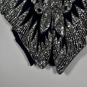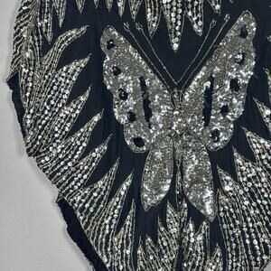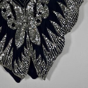 Vintage Silk Butterfly Sequin Top Black & Silver Women’s Size M New Years Eve
