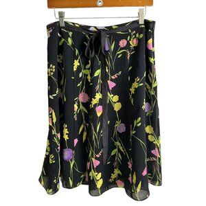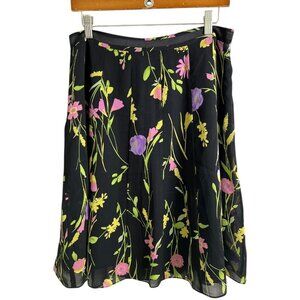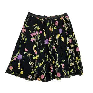 Vintage Silk Chiffon Beaded Floral Knee Length Skirt Black Size 12 Preppy Twee