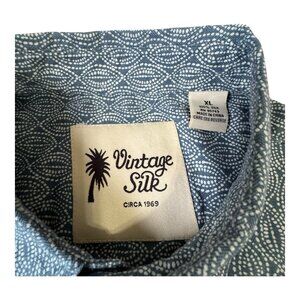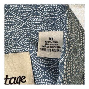 Vintage Silk Circa 1969 100% Silk Men’s Shirt XL Blue Geometric Pattern