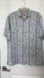 Soft and cool silk blend short sleeve button down. Off white creamy color with a pale blue tropical pattern. Lightweight fabric makes this a perfect shirt for warm weather, vacations, tiki bar, seaside, cruise or luau.