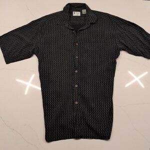 Vintage Silk Circa 1969 Shirt Sz M Men's Button Up Short Sleeve Black Geometric