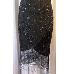 Vintage Silk Dress Fringe 8 Beads Sequins Kazar M
