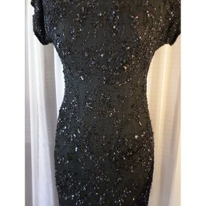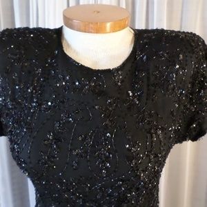 This is a stunning vintage ladies dress. The beading and sequins are stunning! The "Stenay" original manufacturer size and care tags are in place - they indicate a size "8" and the gown is made from 100% silk (exclusive of trim.)