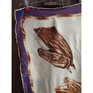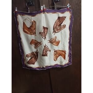 Vintage Silk Horse Scarf Horse's prints equestrian purple brown purple square