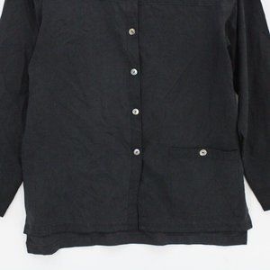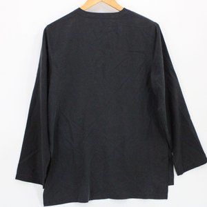 Vintage Silk Land Blouse Top Womens Black Button Front Long Sleeve Size Small S