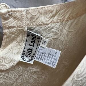 Vintage Silk Land Womens Blouse Size Petite M Beige Paisley Short Sleeve Keyhole