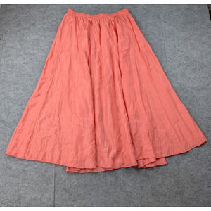 Vintage Silk Midi Skirt Womens Large Pink Coral Lightweight Layering Cottage 90s
