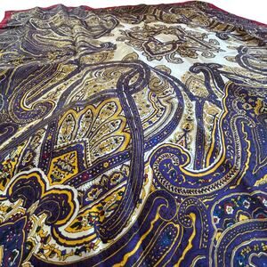 Boho chic silk paisley scarf vintage red border retro glam japan 34”