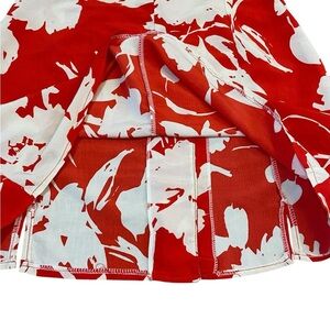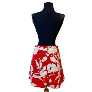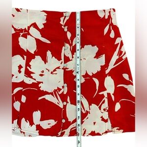 Vintage Silk Red & White Floral Mini Skirt With Buttons