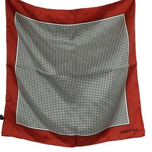 Vintage Silk Scarf Neckerchief Hunter Green Red Houndstooth Hand Rolled 19"