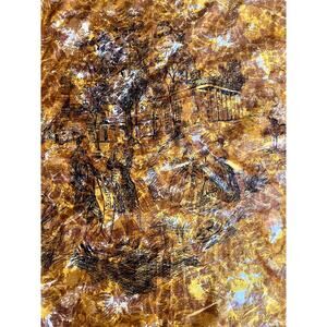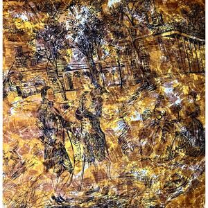 In beautiful condition. Mustardy yellow color with brown border and black sketch of a french scene.