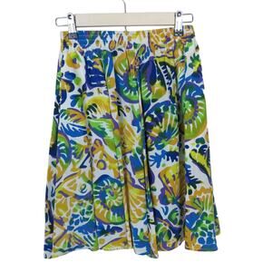 Vintage Silk Sea Shell Pattern Bright Blue Yellow Skirt - Women's M