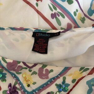 Vintage Silk Skirt Butterflies Beaded Size 14 Fairy Boho Romantic Cottage Y2K
