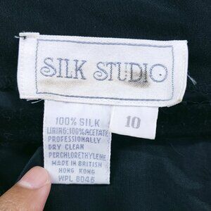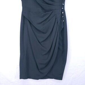 Vintage Silk Studio 100% Silk Black Drape V-Neck Sleeveless Dress Cocktail 10