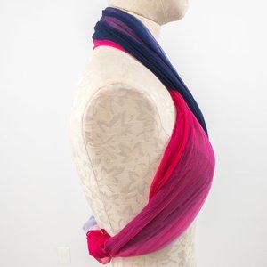 Vintage semi-sheer 100% silk chiffon scarf in gorgeous printed ombre pink & purple. Big rectangle wrap w tiny crinkled pleats give this bold accessory subtle texture. Wear it around neck, as a belt, wrap, sarong skirt, top - so many ways to style! EUC.