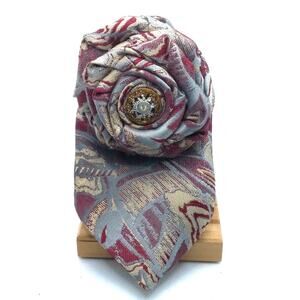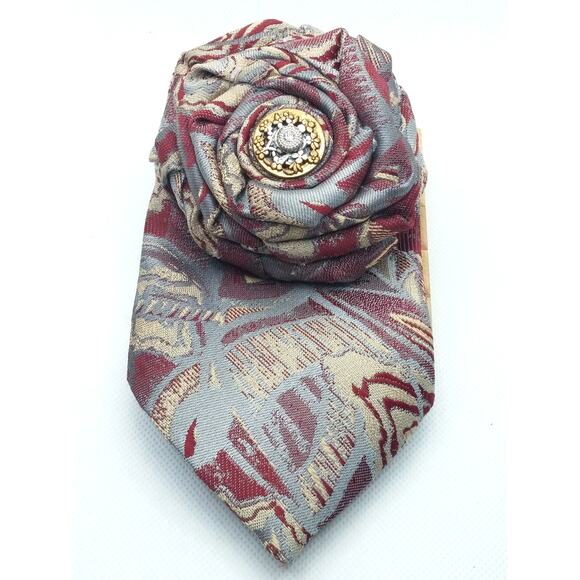 Vintage Silk Tie Pin Wembley Hand Crafted Upcycled Brooch Floral MCM Button New