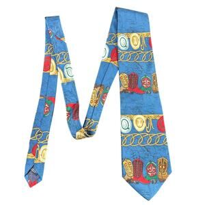 Vintage Silk Tie- Texas Map- Cowboy Hats Boots- Ropes- Rode- Novelty OSFM