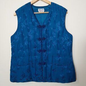 Vintage Silk Vest Double Horse Puff Quilt Boho Asian Satin Blue