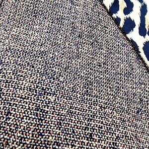 This silk blazer combines textured tweed with bold leopard accents, creating a sophisticated yet striking design. Ideal for professional or elevated casual settings.