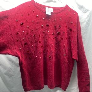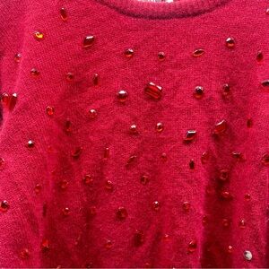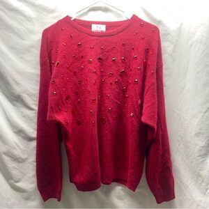 Rare unique find, bedazzled with red jewels. Very soft and fuzzy with dolman type sleeves. Wool angora blend