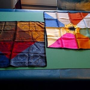 Vintage Silk Block & Paisley Color 18 x 18 inch Scarfs Cottagecore Colorful