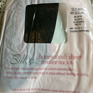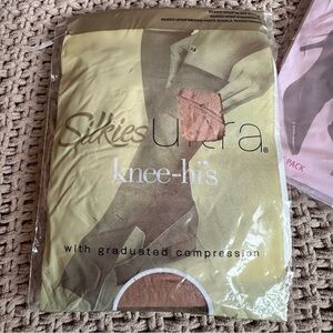 Vintage Silkies Honeycomb Black Sheer Trouser Socks & Nude Ultra Compression Knee-hi’s. Sz Regular. Both new in original packed from 2004 & 2006. Made in the USA.