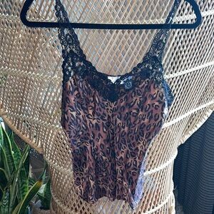 Vintage Silkscreen cheetah print silk cami with lace trim