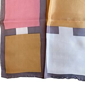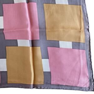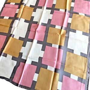 Vintage Silky Acetate Scarf Pink Gray Cream Peach Geometric Tailored 1970's