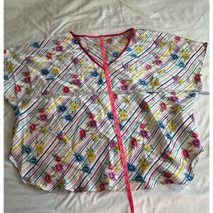 Colorful striped print with flowers