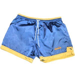 Vintage Silky Diadora Boxing Running Elastic Drawstring Blue Gold Shorts Large