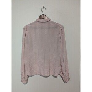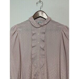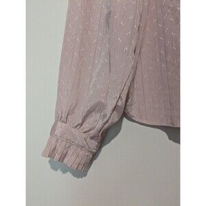 Vintage Silky Ruffle Puff Sleeve Blouse Long Sleeve Pink Jacquard Dot Campus M