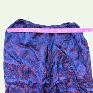 Experience timeless elegance with these Vintage Silky Satin Pajamas, featuring a petite button-up design adorned with a delicate floral motif in deep purple and blue, accented by a striking red collar. Crafted from smooth satin, they offer a luxurious feel and a flattering fit with a cinched ankle and elastic waistband for comfort and style. Perfect for lounging or restful sleep, these pajamas combine classic charm with expert tailoring.