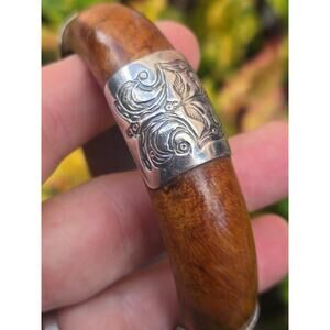 Vintage Silpada Etched Sterling Silver and Wood Bangle Bracelet, 2007 B1490