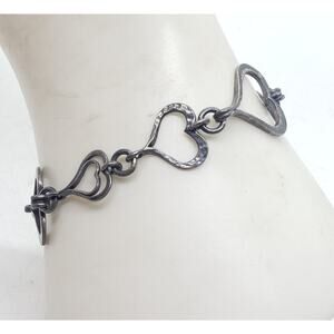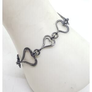 Vintage Silpada Sterling Silver Linked Open Heart Bracelet 8in Women's Hammered 925 Mexico