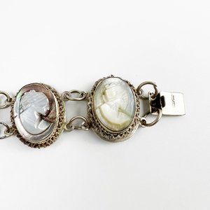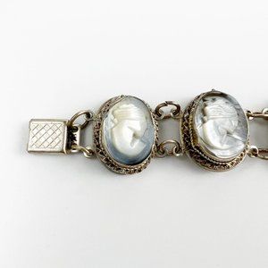 Bracelet is 7.5", each cameo panel link is 3/4" x 5/8"
