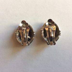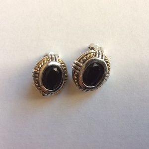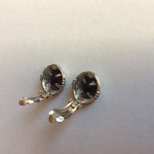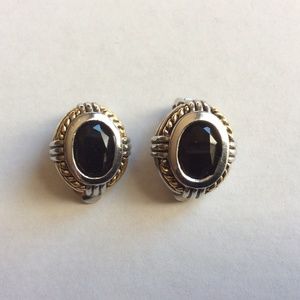Vintage Silver And Gold Tone Black Glass Twisted Rope Design Clip On Earrings