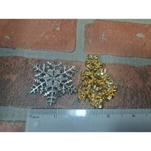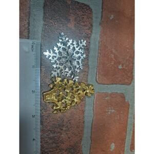 Vintage Silver And Gold Toned Christmas Brooches Snowflake And Tree