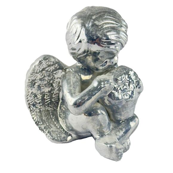 Bring a touch of gentle peace to your space with this lovely vintage angel figurine. With a shimmering silver finish and a sweet, contemplative pose, this little cherub is ready to watch over your home from a shelf, mantel, or nightstand. Its gentle wear adds to its authentic vintage character, giving it a story to tell. Perfect for holiday decorating, as a thoughtful sympathy gift, or for anyone who loves the dreamy angelcore aesthetic.
